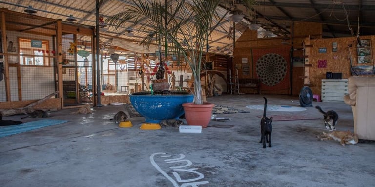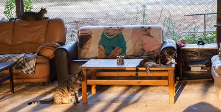 לכל חתול, חדר משלו עם שירותים פרטיים אוכל מים. המקום בנוי באופן שיש אפשרות לחתול להסתובב באופן עצמאי מחוץ לחדר לאחר תקופת התרגלות.